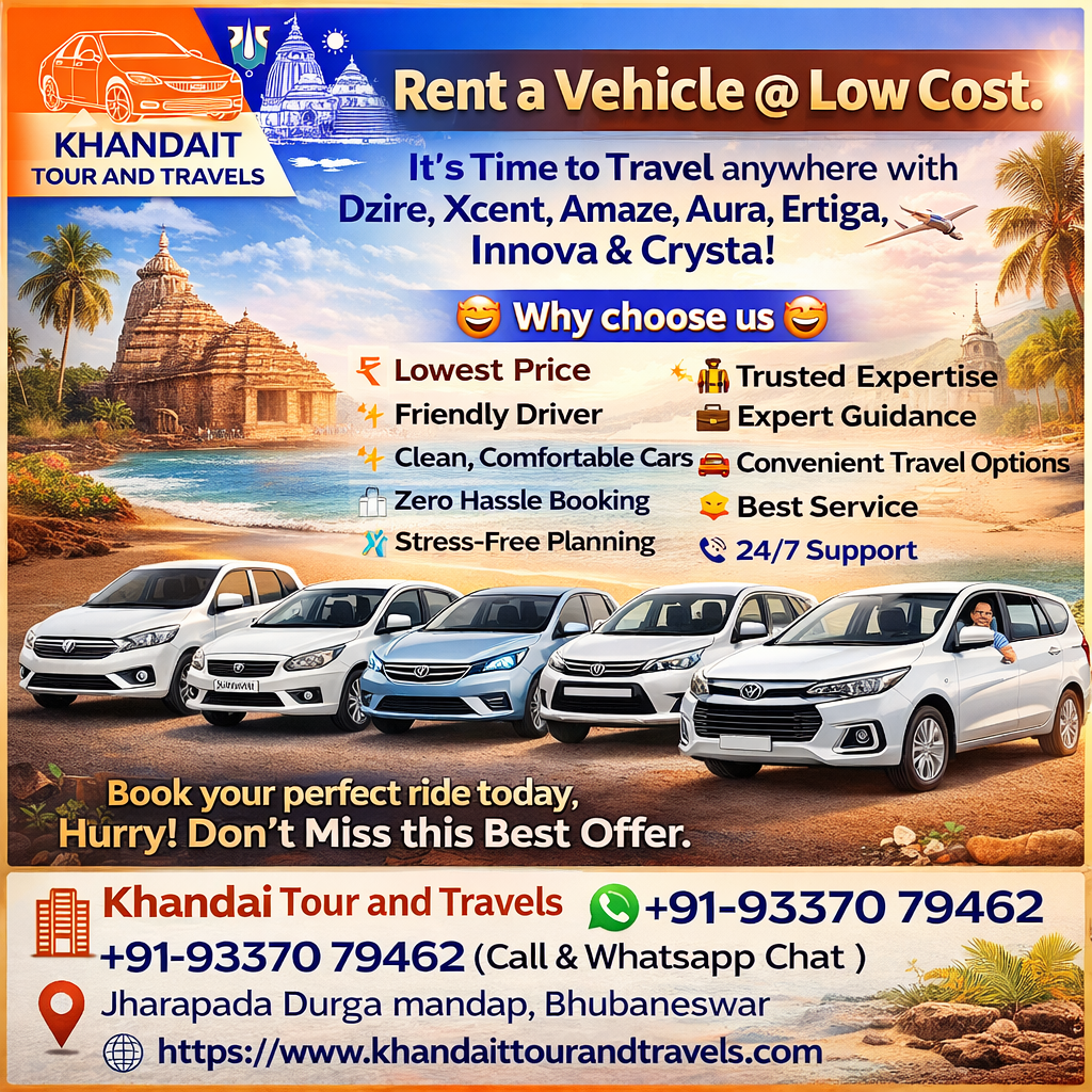 🚘 Rent a Car at the Lowest Price in Bhubaneswar! Khandait Tour and Travels brings you
